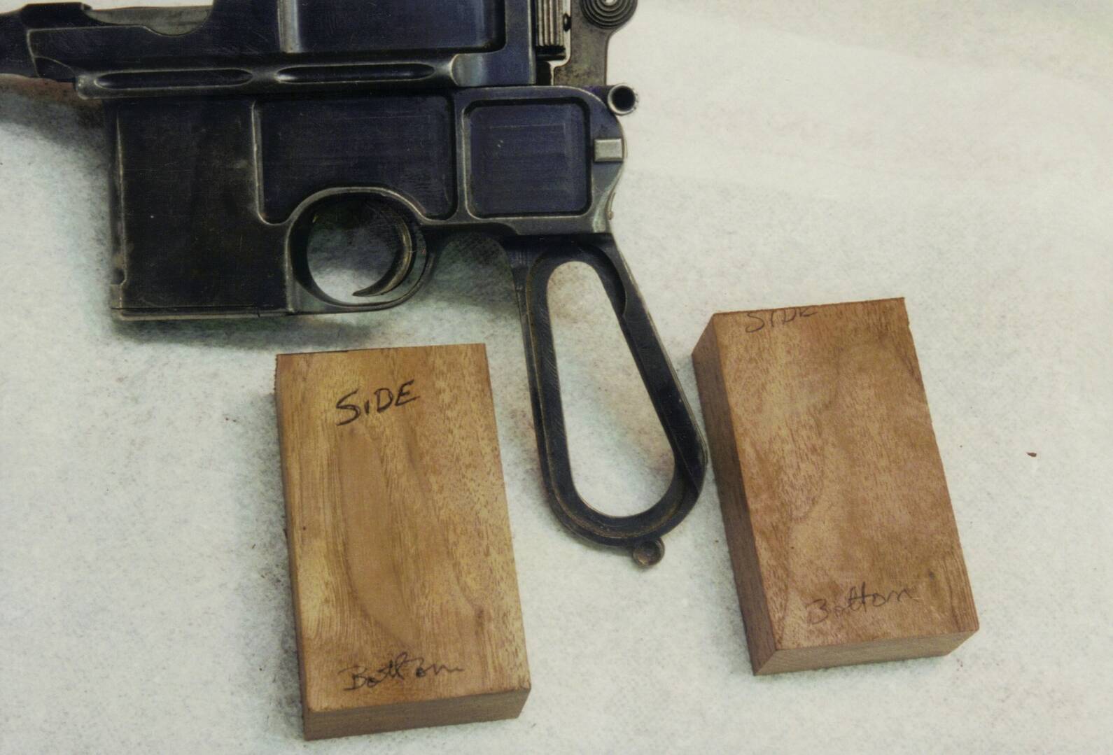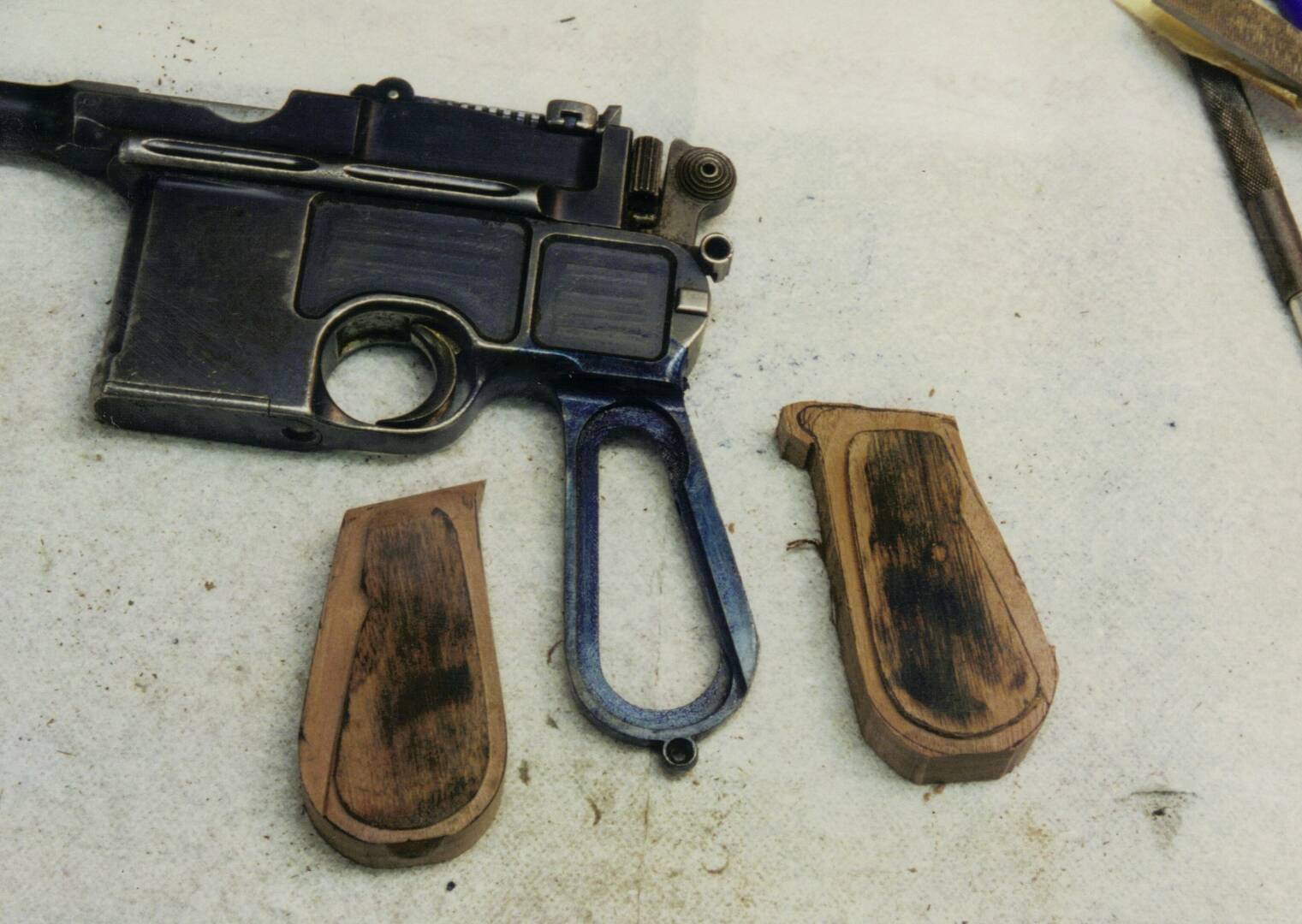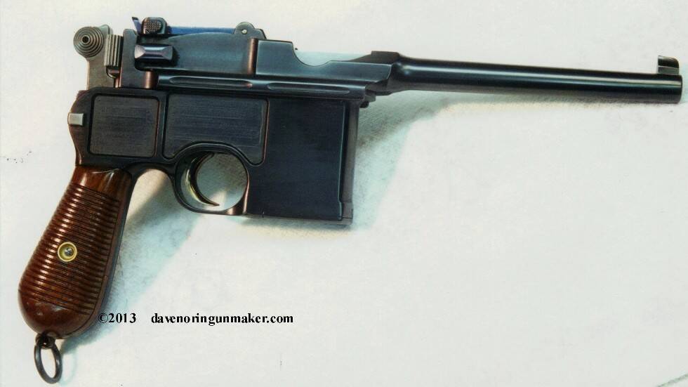 Here are some photos of stocking a Mauser m-1896 Broomhandle pistol - This version is called a 'cone hammer' because of the shape of the concentric rings on the hammer. These very early versions have a frame shaped a bit different than the later models, which makes finding correct stocks almost impossible, hence you have to make them.