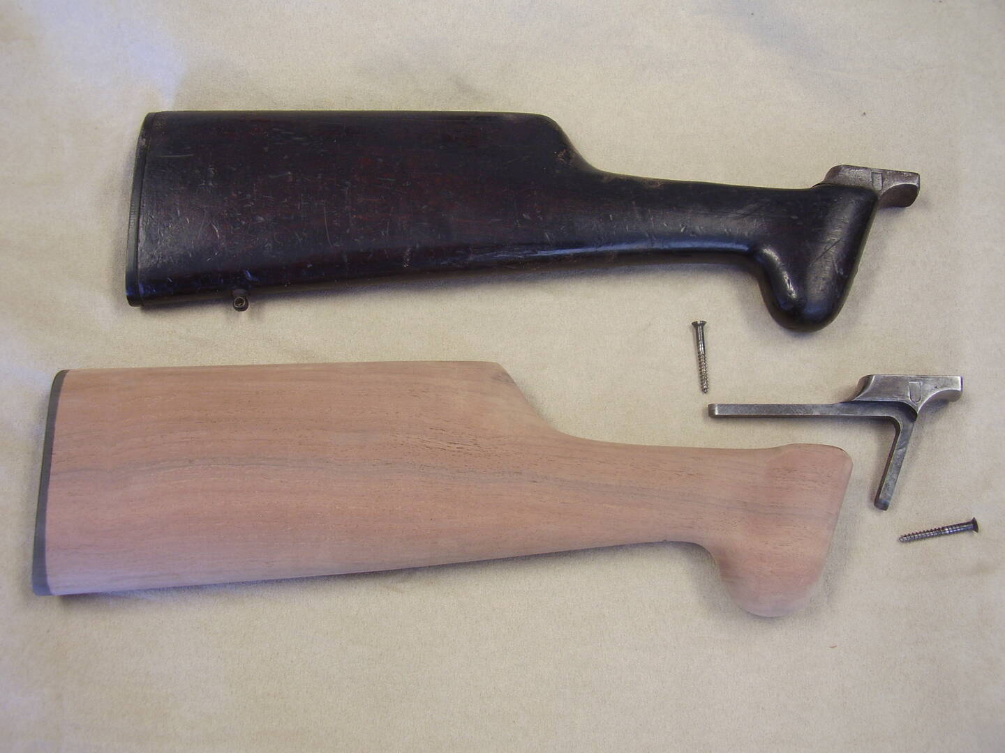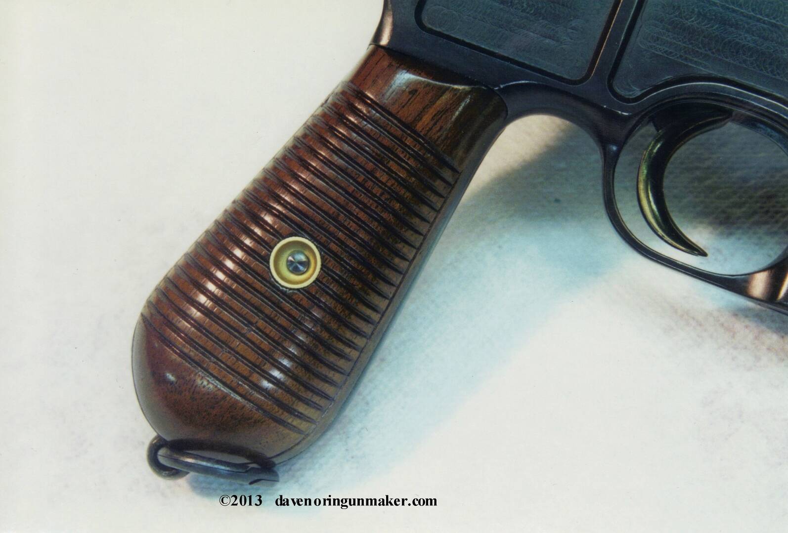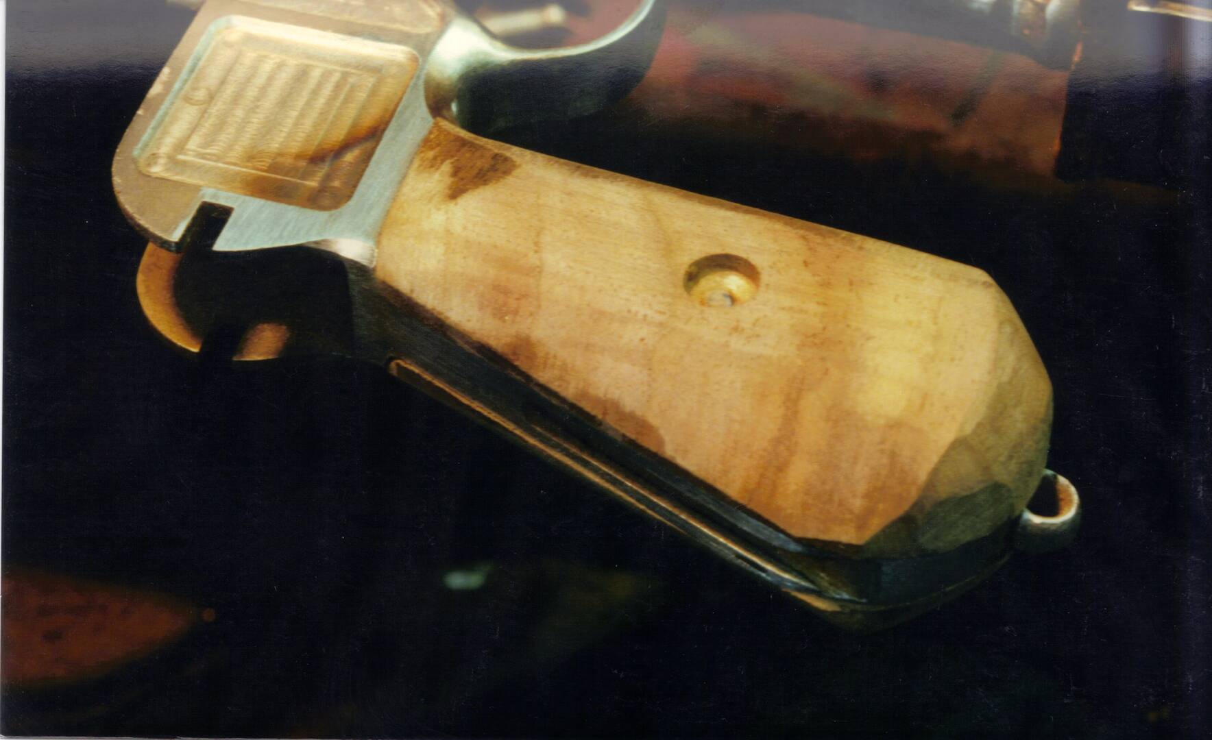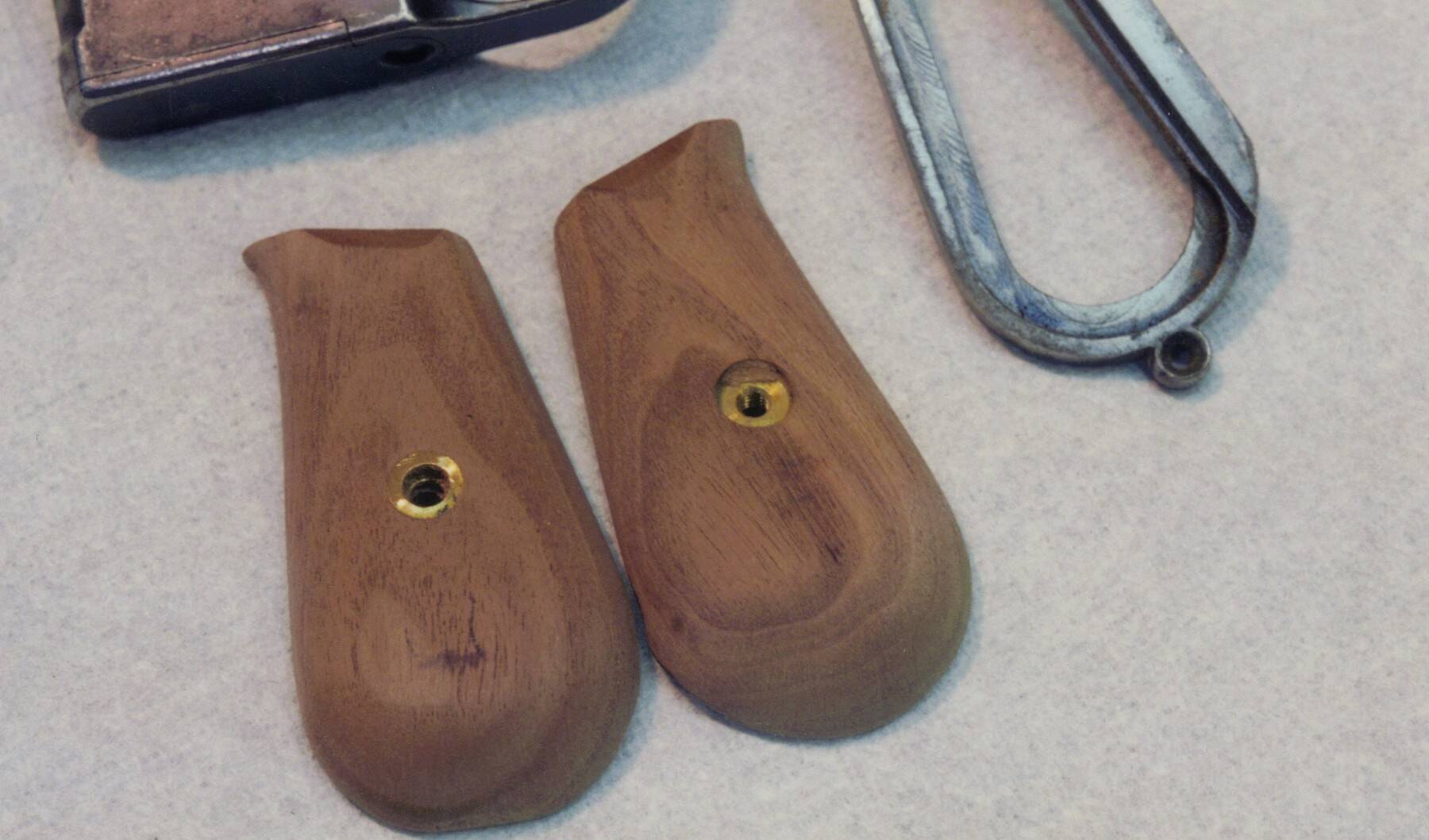 You may notice that the lanyard ring is now reinstalled. It had been removed to keep it from getting dinged during the stock making. Things like the right number of grooves and the shape of the screw escussion are important to duplicate.